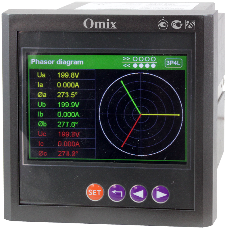 Прибор для измерения гармоник тока и напряжения, фазного напряжения, линейного напряжения, фазной силы тока, частоты тока, тока небаланса, напряжения небаланса, углов сдвига фаз между током и напряжением, активной мощности, реактивной мощности, коэффициента мощности, активной энергии и реактивной энергии