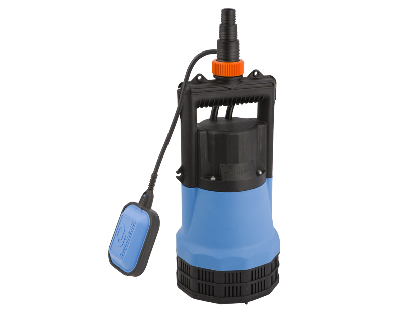 Центральное выходное отверстие в ручке — уменьшает общие габариты при присоединении магистрали, накидная гайка — позволяет быстро и комфортно смонтировать/демонтировать насос, не нарушая целостности отводящей магистрали, оранжевый цвет облегчает поиск в траве или земле при проведении работ.