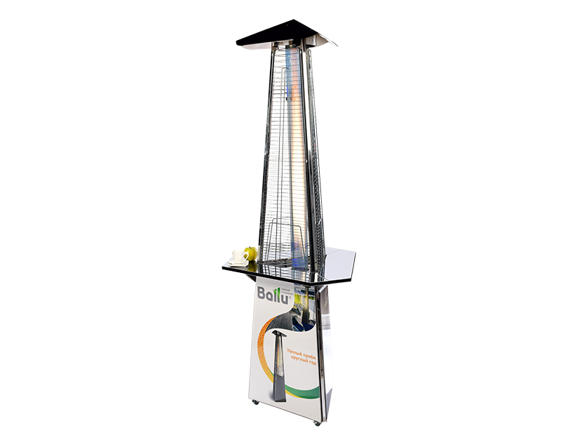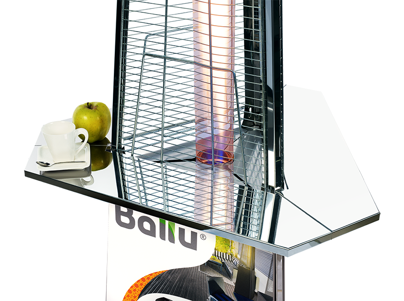 Столик разработан инженерами Ballu с учётом всех особенностей использования уличных обогревателей на летних верандах ресторанов и в уличных кафе.
