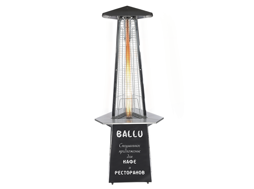 Столик разработан инженерами Ballu с учётом всех особенностей использования уличных обогревателей на летних верандах ресторанов и в уличных кафе.