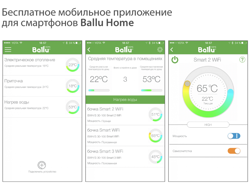 Электрические накопительные водонагреватели SMART WiFi с баком из нержавеющей стали – это «умные» и экономичные модели, которыми легко управлять через Интернет при покупке Wi-Fi-модуля (приобретается отдельно). Все режимы можно настроить в фирменном мобильном приложении. С его помощью можно удаленно управлять временем и температурой нагрева воды, включать или выключать прибор. Управляя по индивидуальному графику, включая нагрев только в самые «дешевые» часы (трехтарифный счетчик), можно сэкономить до 55% электроэнергии и окупить прибор за 2-3 года активной эксплуатации, в зависимости от литража. Модели SMART WiFi имеют плоский корпус белого или серебристо-серого цвета (Titanium edition) и допускают универсальный монтаж – горизонтально или вертикально. Все водонагреватели Ballu производятся по новейшим технологиям. Долговечность эксплуатации обеспечивается шестиступенчатым контролем качества сварочных швов внутреннего бака и Life-тестом на 160 000 циклов нагрева. Надежность внутреннего бака подтверждается премиальной гарантией – 8 лет. Выбрать прибор по выгодной стоимости, познакомиться с отзывами удобно в официальном интернет-магазине.