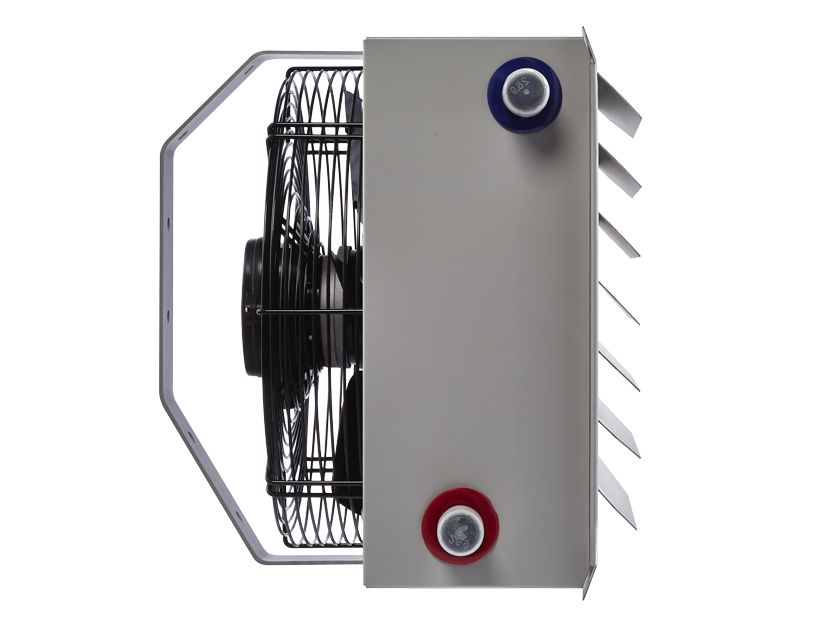 Водяной тепловентилятор устанавливается на стены, колонны или потолок при помощи кронштейна, который входит в комплект поставки. Кронштейн позволяет регулировать угол наклона тепловентилятор в горизонтальной и вертикальной плоскости.